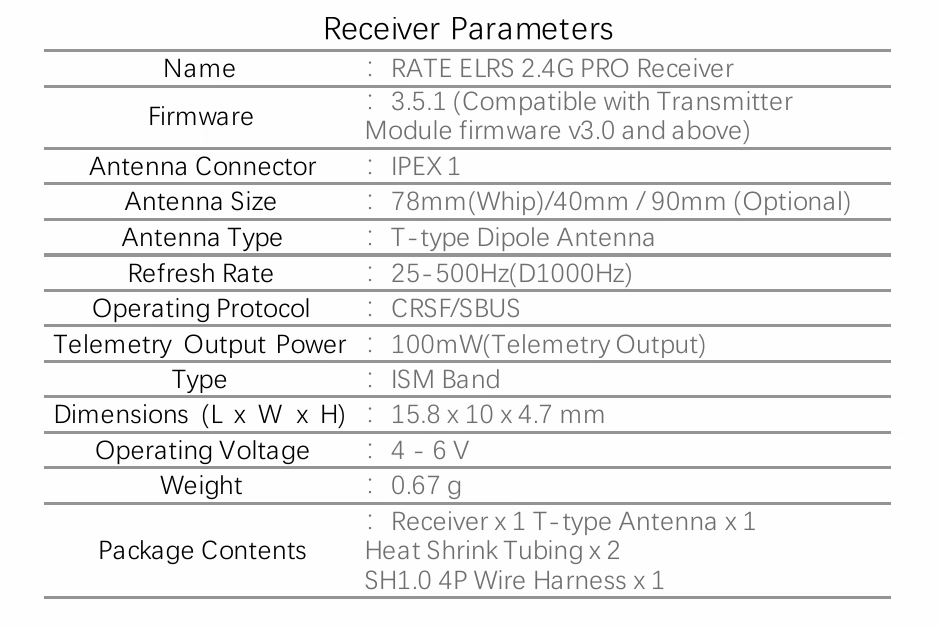 RATE ELRS 2.4G PRO Receiver
